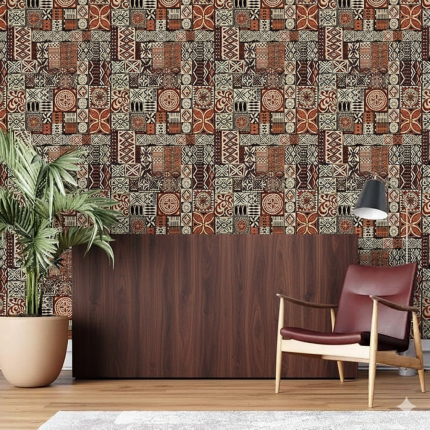 Tapa Pattern Self Adhesive Wall Grain Textured Wallpaper (41cm x 244cm, Multicolor)